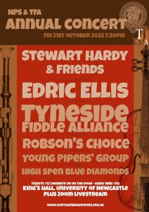 Northumbrian Pipers' Society and Tyneside Fiddle Alliance Annual Concert: Friday 21st October, 7.30 pm The Northumbrian Pipers' Society and the Tyneside Fiddle Alliance are teaming up to bring you some fantastic performers for an evening of Northumbrian music featuring pipes,…