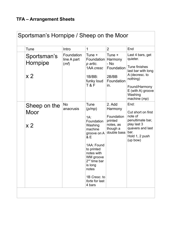 - Fallowfield March – TFA (Twice through – 1: Tune & Foundation, 2: Add Harmony)